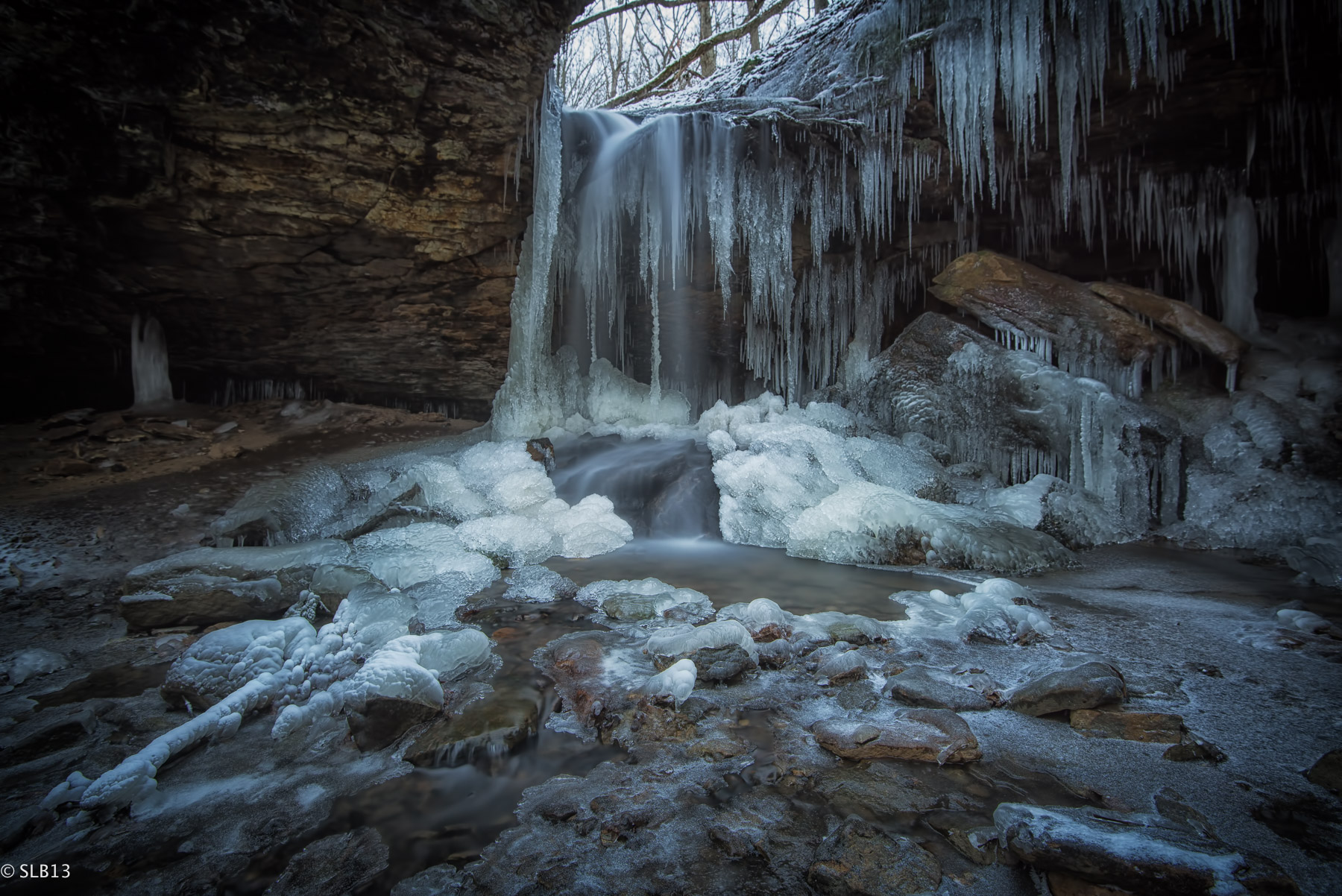 All healing medicinal springs in PA? Check. Remote town 30 miles from Pittsburgh? Check. Winter wonderland with amazing ice sculptures? Check. What is this place? It’s the Frankfort Mineral Springs, located in Raccoon Creek State Park. Never heard of it, you say. Well I’m not surprised. In the 1800’s the area was the site of an upscale resort that boasted about the healing properties of the springs. There isn’t much recorded history on the springs, but it’s said that the Indians in the area knew of the springs and it’s healing powers, around the late 1700’s. The first recorded owner of the lands was Levi Dungan who claimed 1,000 acres. The lands have had several owners over the past 200 years. But only one owner realized the benefits of what he had, that was Edward McGinnis. McGinnis built what was known as the Frankfort House Hotel and Resort. The resort was an instant hit, with wealthy guests of the victorian era often staying months at a time. They enjoyed the healing properties of the springs to heal their aliments. The resort also boasted food farmed on-site and what couldn’t be grown, was locally sourced. Around 1884, the resort again changed hands. James Bigger bought the resort for $5,500. It was still a popular place with many travelers and long-terms guests. The construction workers working on route 18 stayed on site at the resort. It remained popular but fell to fire around the 1930’s. Nobody was hurt, but the site was destroyed. The cause of the fire was never stated officially, but unofficially it was blamed on a guest who did not properly use the wood burning stove in one of the guest rooms. The site could not be re-built due to the Great Depression. Around 1967 the State of Pennsylvania acquired the land, and proceeded to carve out Raccoon Creek State Park. Not all was lost of the resort, there was one remaining building. It was a guest cottage. It was turned into a museum housing artifacts of the springs. However, the museum fell quickly to vandalism. Today all of the artifacts are gone, but you can take the well hidden trail to the grotto where at any given time 2 springs still flow. It is said that the springs still carry their medicinal properties. I didn’t test that out on this day, but when I was there the steam was rising from the bowl that was created by the flowing water. It was a mere 8 degrees Fahrenheit, but I was able to take off my gloves and work freely with my hands. This was really a neat experience in this winter wonderland. The falls did not disappoint either. They created beautiful ice sculptures around the water, and the ice sickles hung all over the grotto. Everything was frozen, even me! My tripod, lenses, and camera were all frozen. I had the entire grotto to myself all morning. It was a quiet and peaceful place. I was able to work listening to the soft drops of water. I was intrigued by the shapes of the ice that was created by the flowing, dripping, and splashing water. It was a beautiful place to spend a cold morning. I can definitely see why the people flocked here from the city. This is a well hidden piece of Pennsylvania history, that I am happy is close to home!