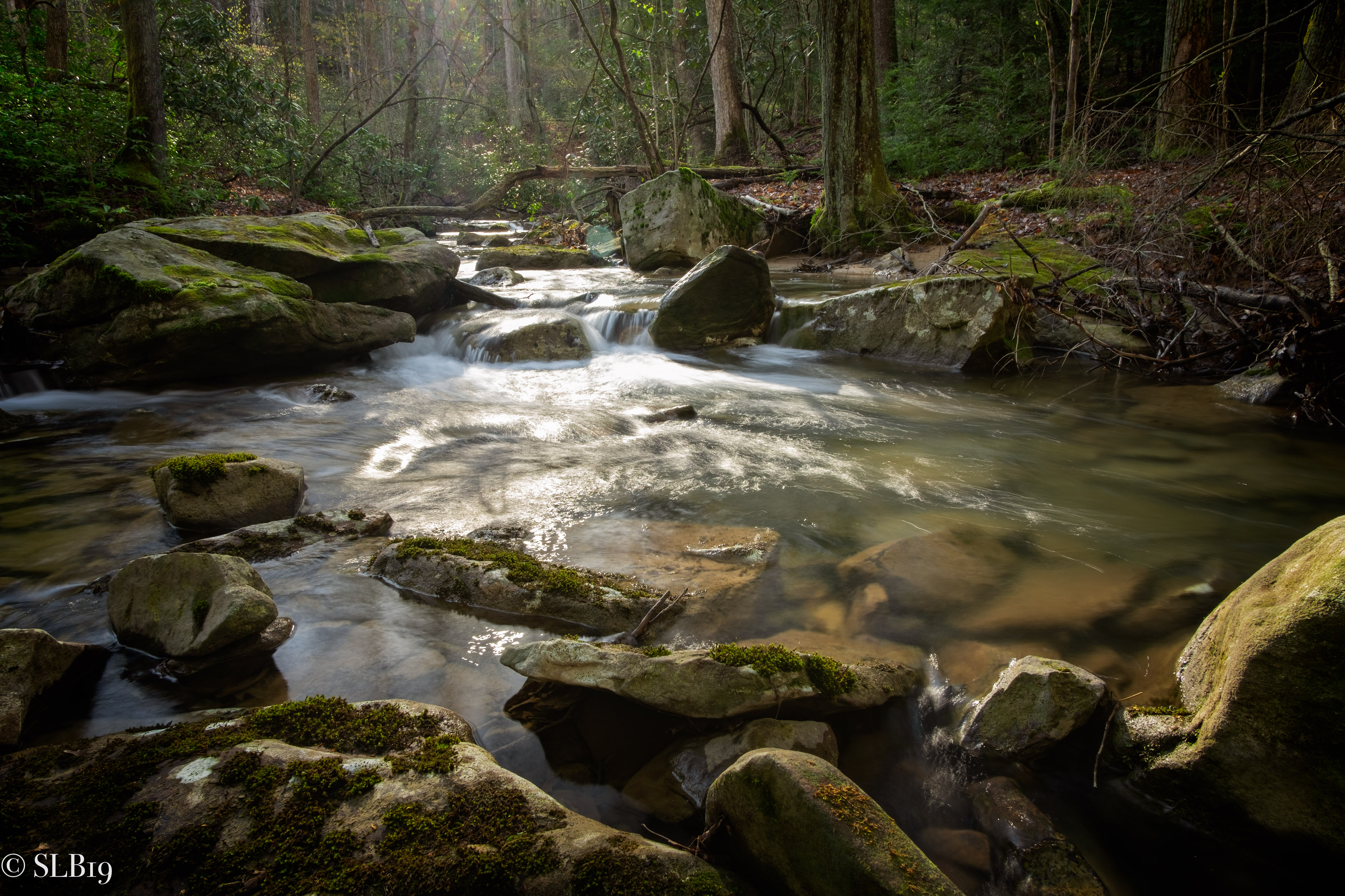 Scott’s Run Trail is a 2.7 out and back that can be turned into a 4.5 mile loop. I was looking for a cool trail to do while my wife ran the Coopers Rock Half Marathon and 50k race. Initially I wanted to stay out of the way of the runners but then also decided at the last minute it would be cool to capture my wife as she ran by. Scott’s Run sounded awesome by the descriptions I found and by the time the runners got there they would be well spread out. I wanted to find a stream or some water feature since last time we hiked Coopers Rock we went to Rock City and Mavens Overlook, both well worth the hike! I talked to one of the race volunteers when I asked about the Scott’s Run trailhead, there were two and I wanted to get started quickly, luckily I was just across from one, starting at the camping grounds. The trail started off with crushed pebbles, I descended down to a tiny creek crossing before heading back up before the trail flattened out again. That quickly turned into a steep rocky section and at the bottom I made left to continue on. From here I saw Scott’s Run, the trails namesake stream. I saw a nice set of water features and decided to head off trail to photograph them. I saw deer and bear tracks but the animals were long gone. I was shooting into the sun which were just above the tree tops shining down into the water. The glare was tough but it was such a nice shot I couldn’t pass it up. I stayed down here for 30 minutes or so before I saw some runners making their way on the trail above. Now was time to climb back to the trail and try to get a nice shot of my wife running by. Unfortunately, with all of her recent training and hard work, she was faster than I expected and zoomed right past me on the trail, only with time for a quick ‘Hello!’ Oh well there will be more chances, I’m sure. After that I hightailed it back up the trail and it was a steep climb from where I was. I didn’t realize that I was at least 2 miles in, didn’t seem like it. I had hoped to catch her crossing the finish line, but I missed that too. She was waiting for me but only for 5-10 minutes. All and all it was a beautiful morning and I really enjoyed the hike on Scott’s Run. We’ll definitely be back and I can finish the trail and explore the other interesting trails at the park.